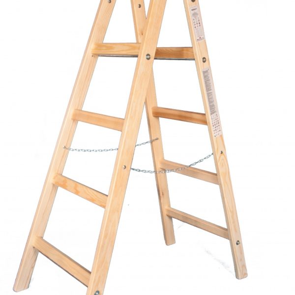 Drevený rebrík dvojdielny /premium/, počet priečok 2×3, dĺžka 2,11m, váha 10,0kg, maximálny dosah 3,6m.