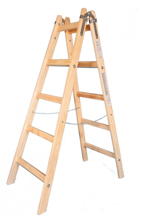Profesionálny drevený rebríky s pozinkovaným kovaním s háčikom na zavesenie vedra, tretia priečka z hora je dubového dreva. Rozstup priečok 29cm.