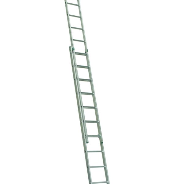 Dvojdielny výsuvný rebrík Eurostyl, počet priečok 2 x 14, max. výsuvná dĺžka 6,82 m a šírka 397 mm. Rebrík možno rozobrať a použiť ako dva jednodielne rebríky s dĺžkou 3,99 m.